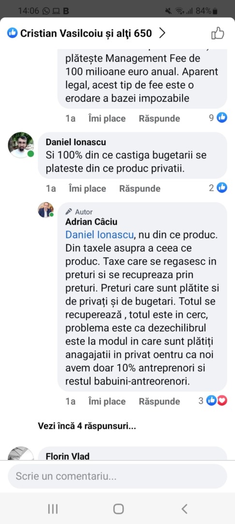 „Problema este ca dezechilibrul este la modul in care sunt plătiți angajații in privat, pentru ca noi avem doar 10% antreprenori si restul babuini-antreorenori”, declara analistul economic de la acea vreme, Adrian Câciu. După cum putea observa în captura de ecran, actualul ministru, are și multe greșeli de scriere.