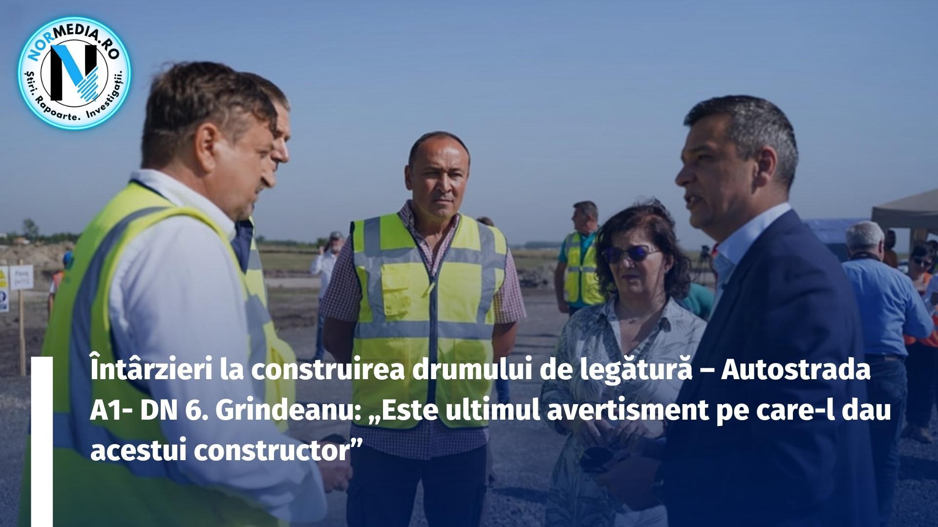 Ministrul Transporturilor Sorin Grindeanu a făcut verificări vineri la șantierul drumului de legătură A1- DN 6, care înregistrase întârzieri. Acesta a avertizat constructorul italian cu rezilierea contractului dacă nu apar progrese, precizează Sorin Grindeanu, ministrul Transporturilor și Infrastructurii.