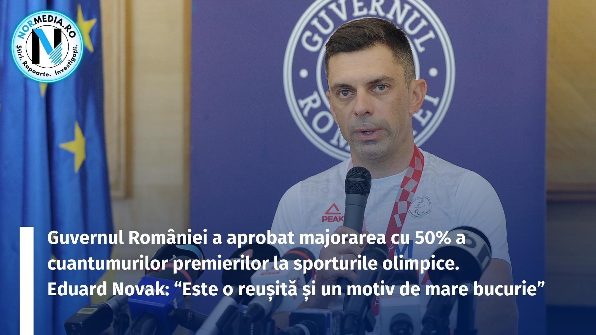 Guvernul României a aprobat majorarea cu 50% a cuantumurilor premierilor la sporturile olimpice, a comunicat Ministerul Sportului.