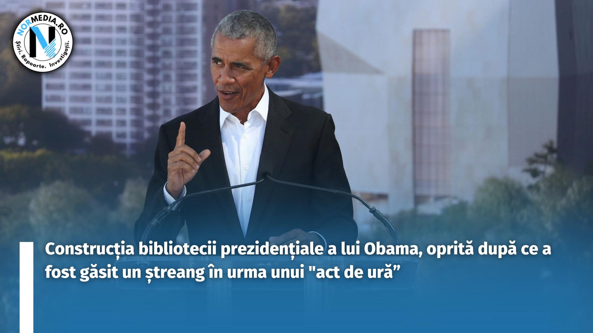 Construcția Centrului prezidențial Obama din Chicago a fost oprită după ce pe șantier a fost găsit un ștreang, scrie BBC.