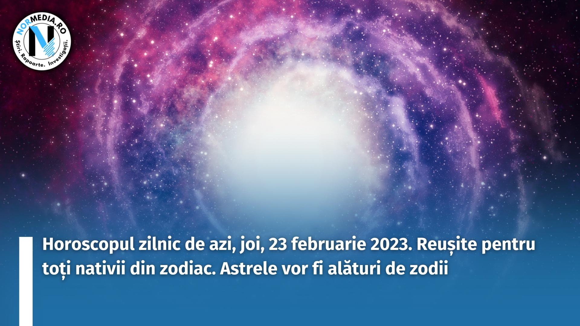 Normedia.ro îți prezintă Horoscopul Zilei de azi, joi, 23 februarie 2023. Reușite pentru toți nativii din zodiac. Astrele vor fi alături celor care doresc să facă schimbări în viețile lor.