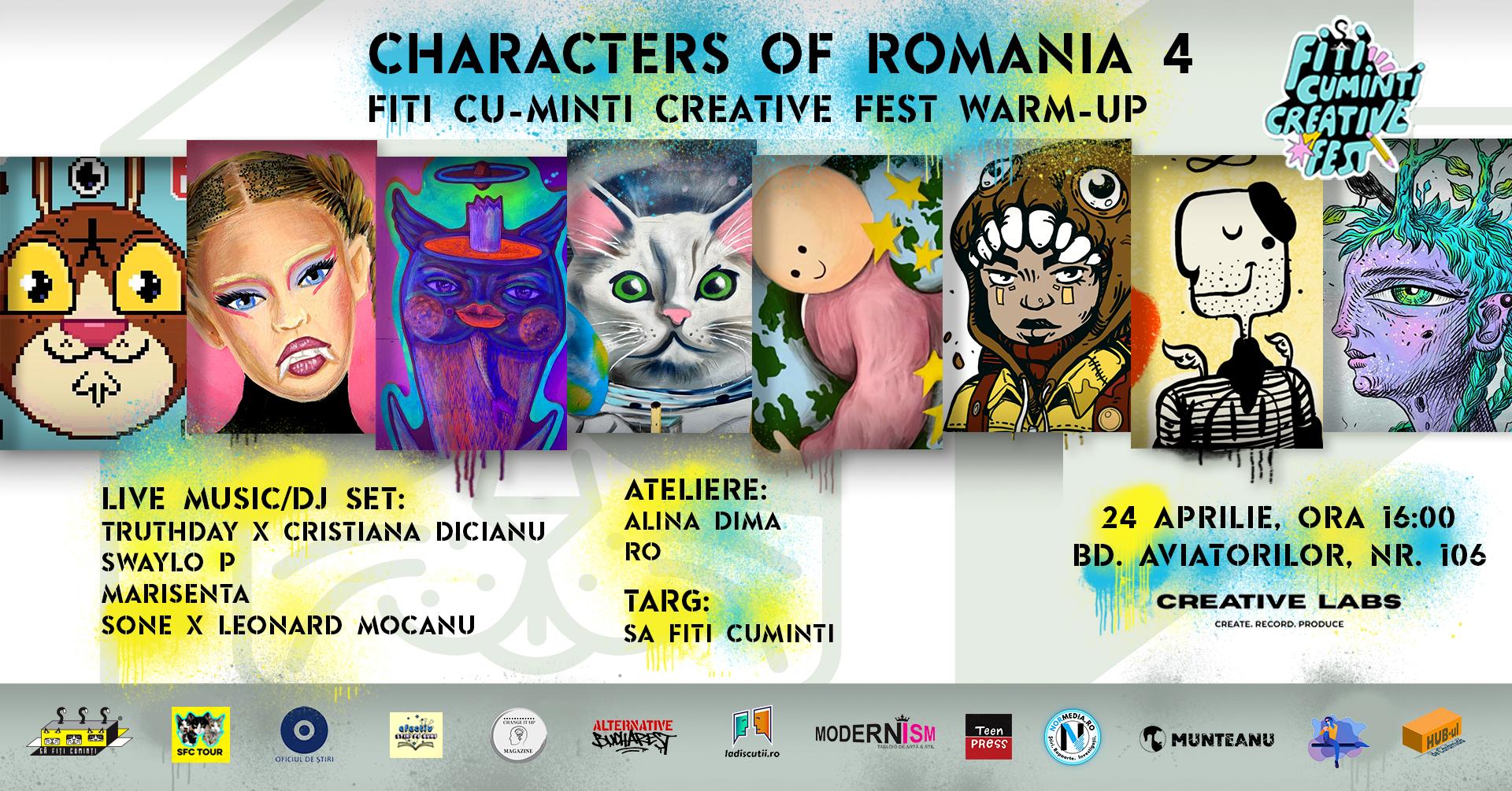 Characters of Romania revine cu episodul 4, cea mai amplă ediție de până acum, și transformă spațiul de la Laboratorul Creativ (Aviatorilor 106) într-un punct de întâlnire pentru artiștii de graffiti și street art din România.